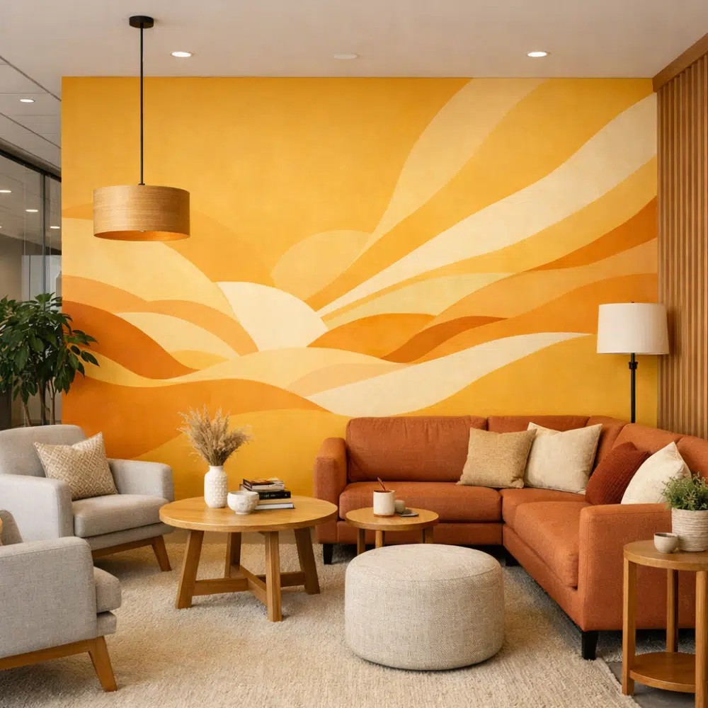 This duality—radiant and expressive during the day, enveloping and immersive at night—opens up new decorative possibilities. The Sunset shade becomes a bold medium of expression, capable of structuring a space, energizing a mural, or asserting the identity of a place while maintaining a warm and contemporary atmosphere.